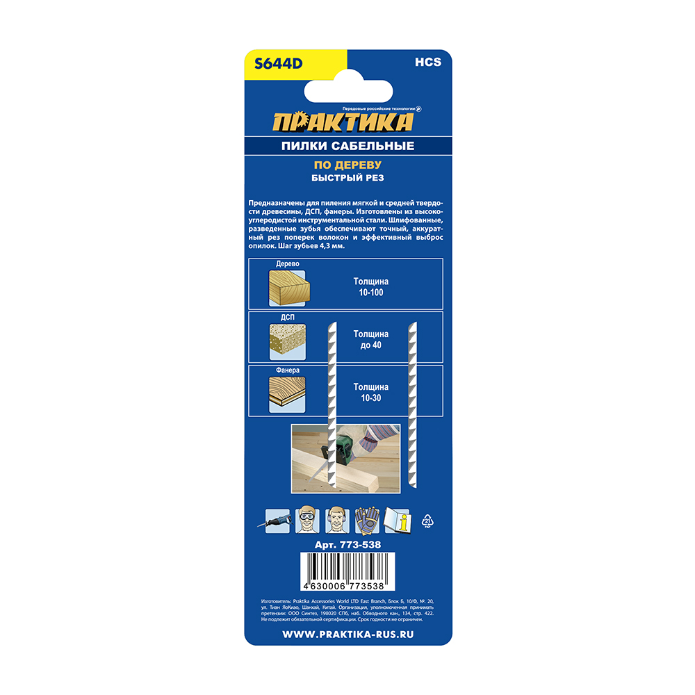 Пилки для сабельной пилы по дереву, ДСП ПРАКТИКА S644D HCS, шаг 4,3 мм, длина 150 мм, 2 шт (773-538) - цена, фото, технические характеристики
