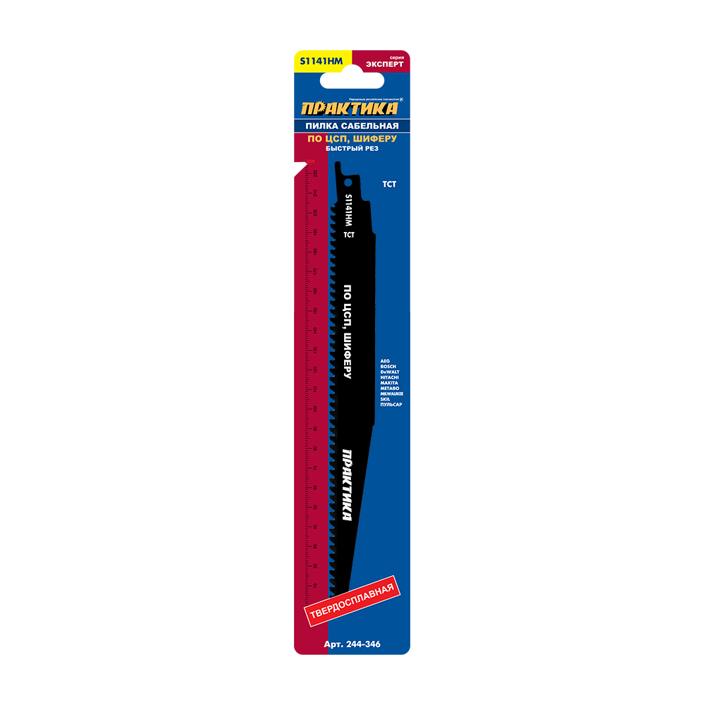 Пилки для сабельной пилы по ЦСП и шиферу ПРАКТИКА S1141HM твердосплавные, 225 мм, шаг зубов 4 мм, 1 твердосплавные, 225 мм, шаг зубов 4 мм, 1 шт