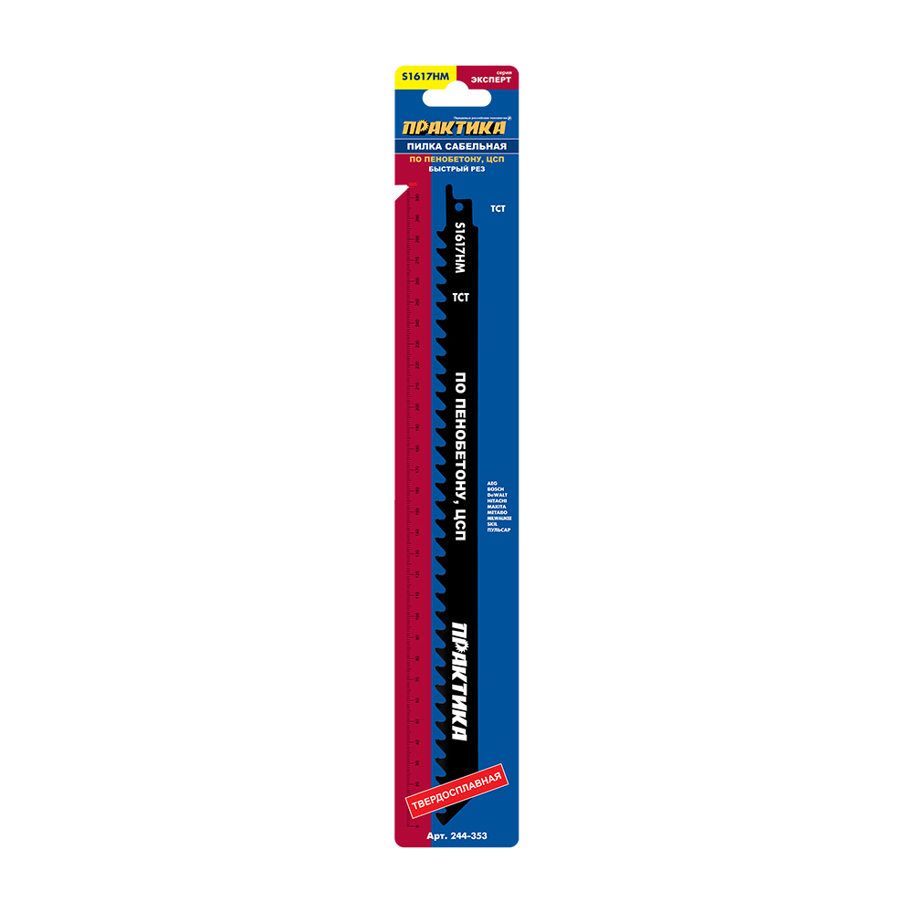 Пилки для сабельной пилы по ЦСП и шиферу ПРАКТИКА S1617HM твердосплавные, бетону/замороженным проду твердосплавные, бетону/замороженным продуктам, 305 мм, шаг зубов 8,5 мм, 1 шт