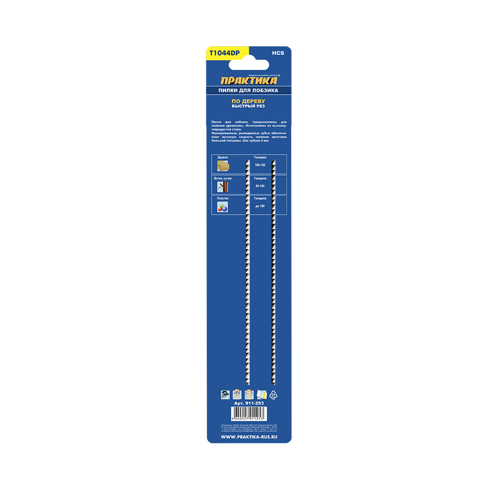 Пилки для лобзика по дереву, ДСП ПРАКТИКА тип T1044DP 250 х 225 мм, быстрый рез, шаг 4мм, (911-253) - цена, фото, технические характеристики