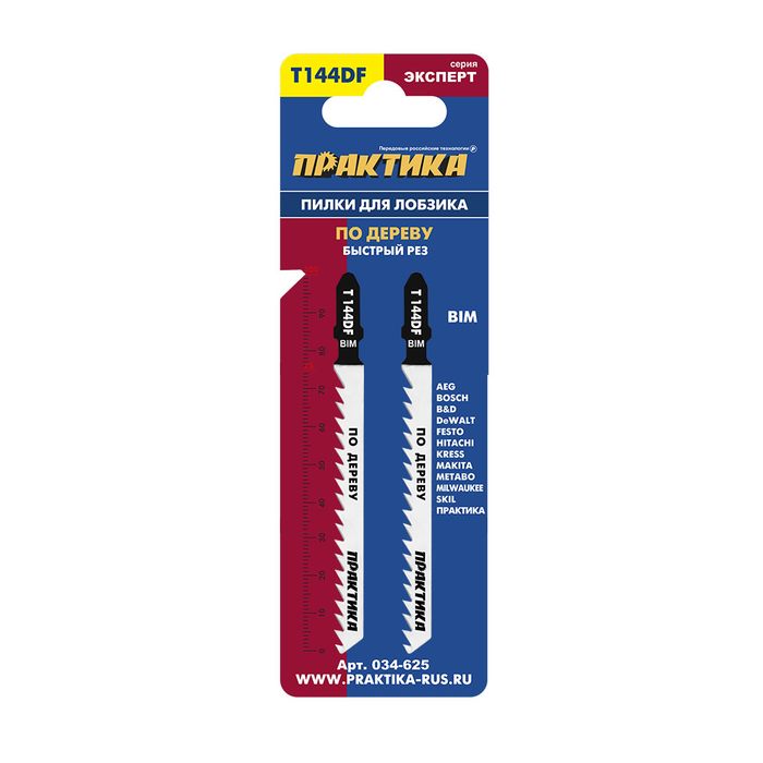 Пилки для лобзика по дереву, ДСП ПРАКТИКА тип T144DF 100 х 75 мм, грубый рез, BIM (2шт.) (034-625) - цена, фото, технические характеристики