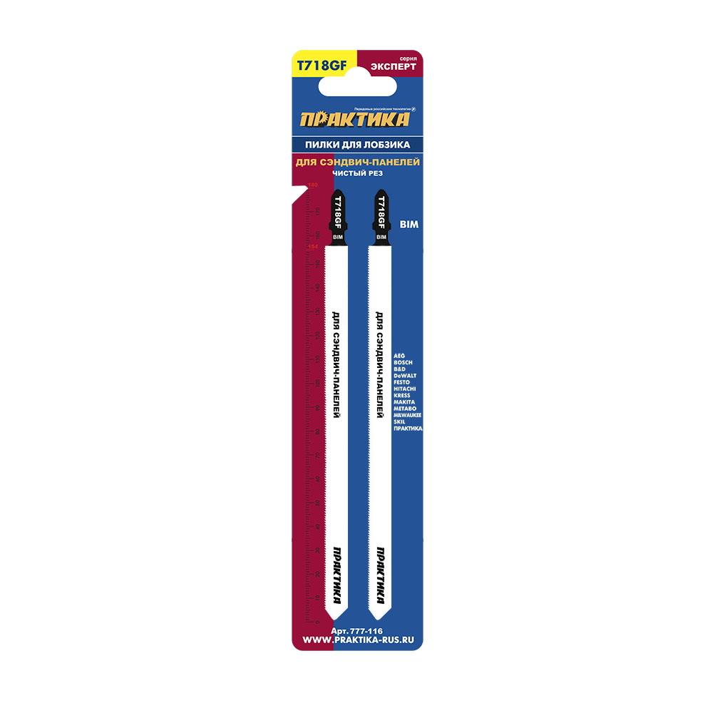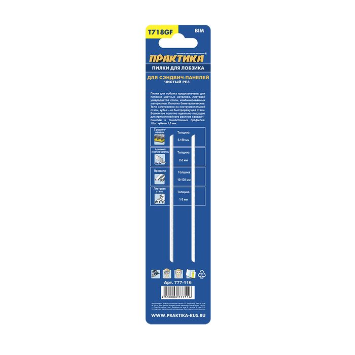Пилки для лобзика по стали ПРАКТИКА тип T718GF 185 x 160 мм, для сэндвич панелей, BIM (2шт (777-116) - цена, фото, технические характеристики