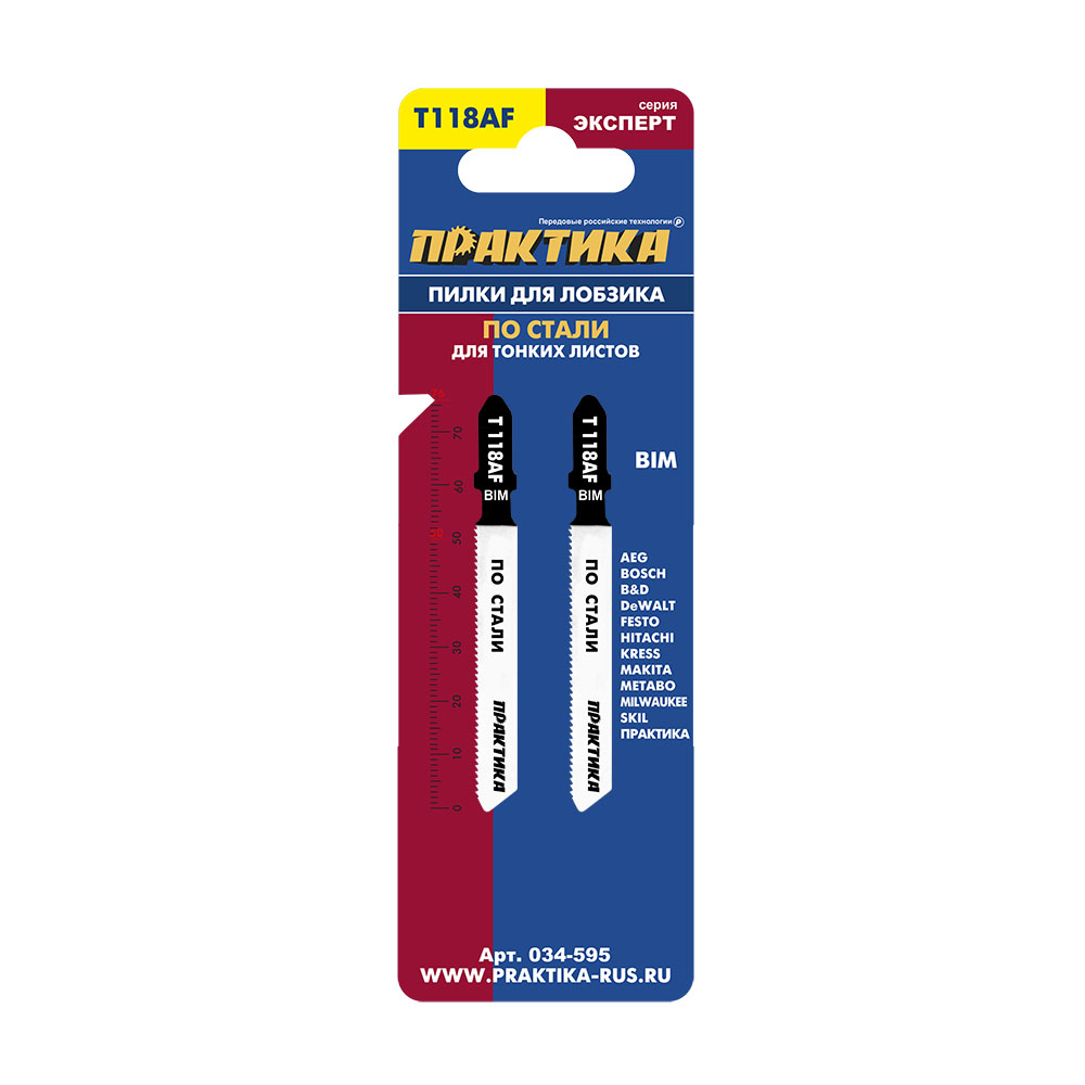 Пилки для лобзика по стали ПРАКТИКА тип T118AF 76 х 50 мм, чистый рез, BIM (2шт.) (034-595) - цена, фото, технические характеристики