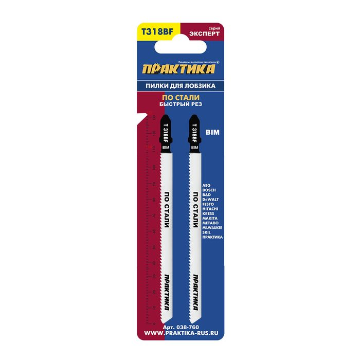Пилки для лобзика по стали ПРАКТИКА тип T318BF 132 х 110 мм, быстрый рез, BIM (2шт.) (038-760) - цена, фото, технические характеристики