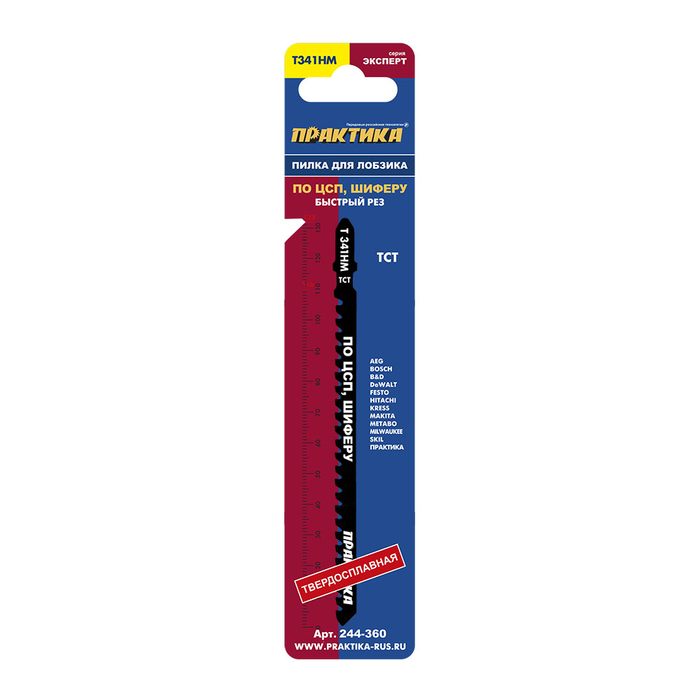 Пилки для лобзика по ЦСП и шиферу ПРАКТИКА твердосплавные тип T341HM, 132 х 110 мм, быстры (244-360) - цена, фото, технические характеристики