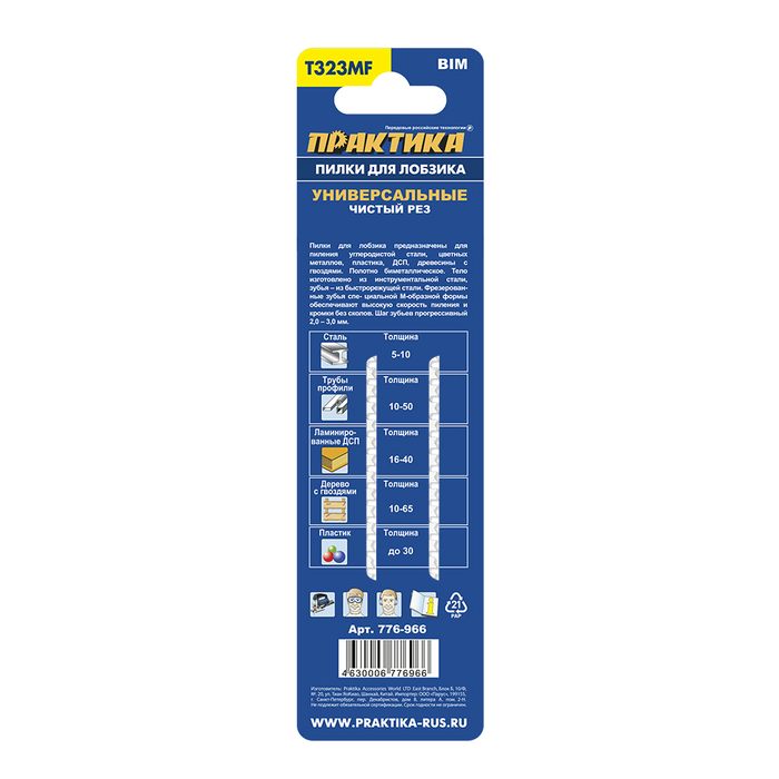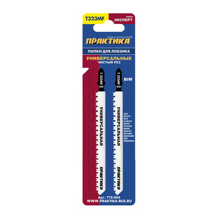 Пилки для лобзика универсальные ПРАКТИКА тип T323MF 132 x 110 мм, Кремлевский зуб, чистый (776-966) 132 x 110 мм, Кремлевский зуб, чистый рез, BIM (2шт)