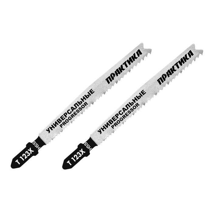 Пилки для лобзика универсальные ПРАКТИКА тип T123X Прогрессор 100 х 75 мм, грубый рез, HSS (038-722) Прогрессор 100 х 75 мм, грубый рез, HSS (2шт.)