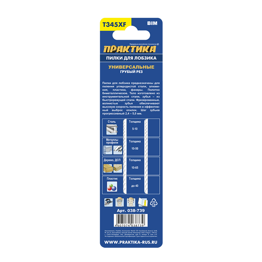 Пилки для лобзика универсальные ПРАКТИКА тип T345XF Прогрессор 132 х 110 мм, быстрый рез, (038-739) - цена, фото, технические характеристики
