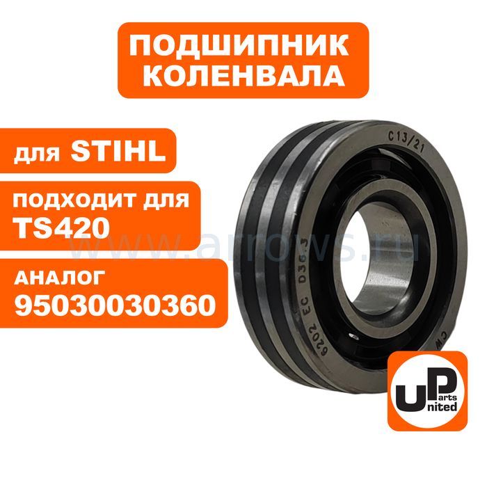 Подшипник коленвала UNITED PARTS для STIHL TS420 15x36,3x11мм (аналог 95030030360) - цена, фото, технические характеристики