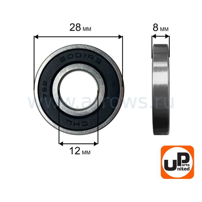 Подшипник шариковый UNITED PARTS 6001-2RS (закрытый) - цена, фото, технические характеристики