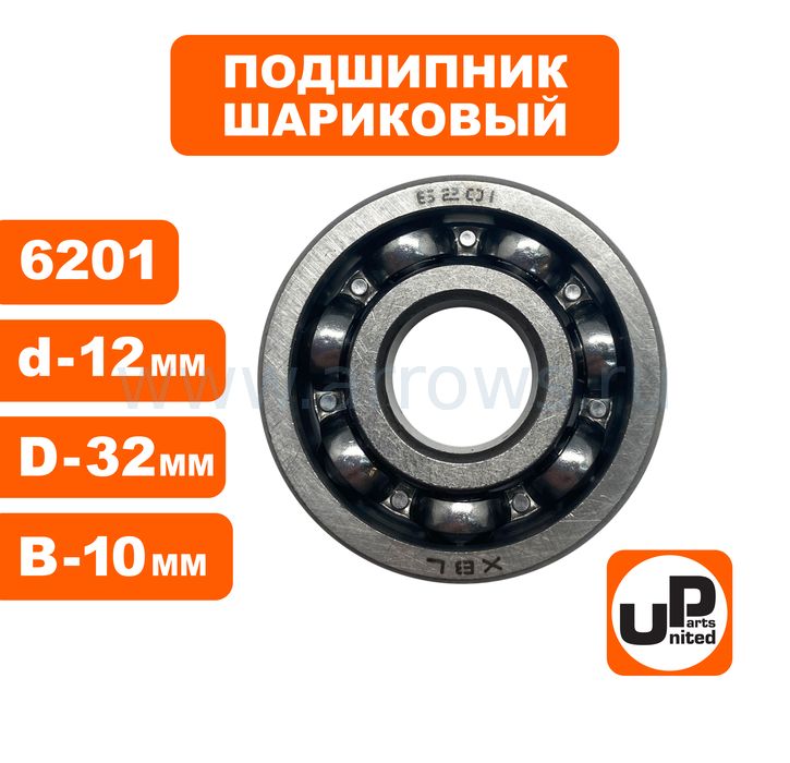 Подшипник шариковый UNITED PARTS 6201 сепаратор металл (открытый) - цена, фото, технические характеристики