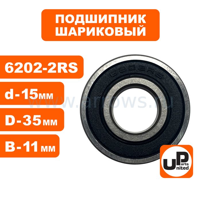 Подшипник шариковый UNITED PARTS 6202-2RS (закрытый) - цена, фото, технические характеристики