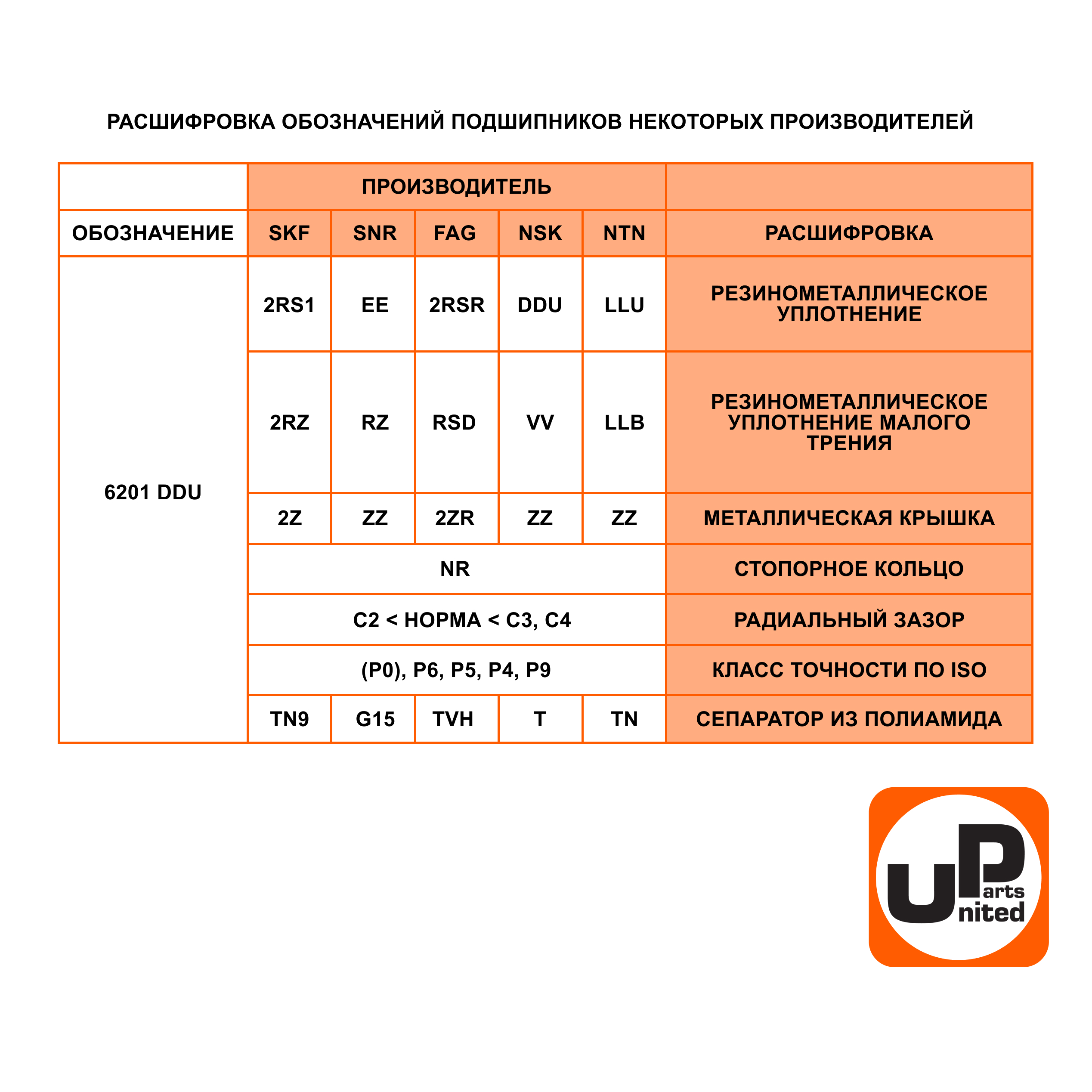 Подшипник шариковый UNITED PARTS 6203 сепаратор металл (открытый) - цена, фото, технические характеристики