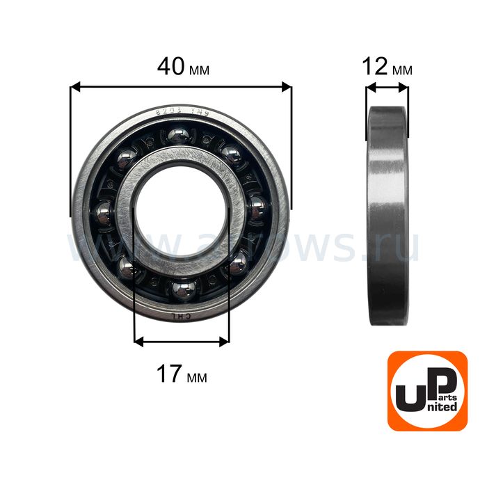 Подшипник шариковый UNITED PARTS 6203-TN9 пластиковый сепаратор (к/вала левый для TS400/460/500i/700/800 аналог 95030030450) - цена, фото, технические характеристики