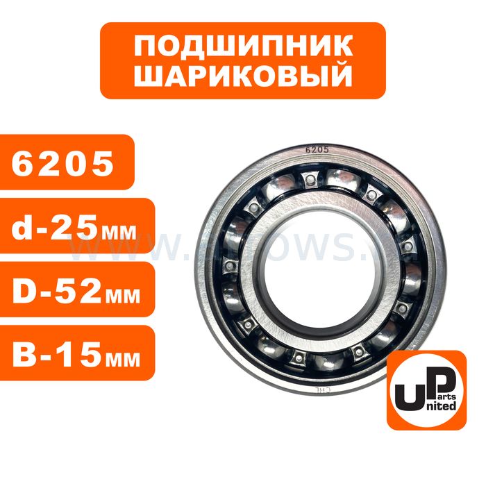 Подшипник шариковый UNITED PARTS 6205 сепаратор металл (открытый) - цена, фото, технические характеристики