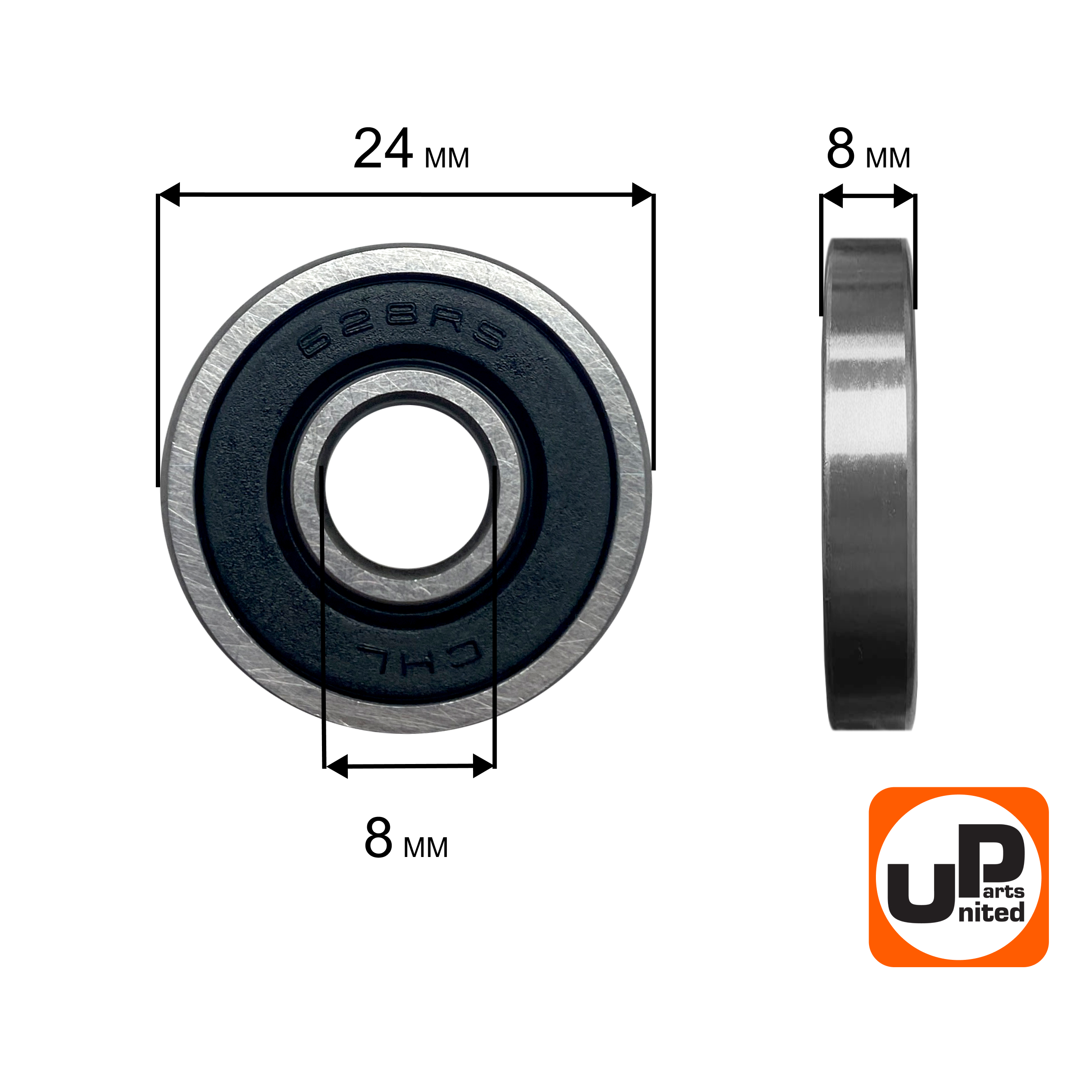 Подшипник шариковый UNITED PARTS 628-2RS (закрытый) - цена, фото, технические характеристики