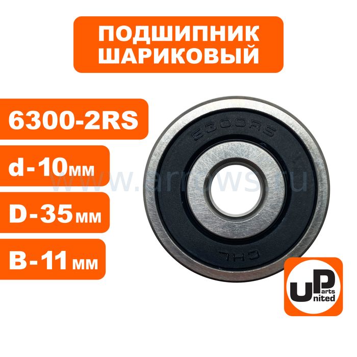 Подшипник шариковый UNITED PARTS 6300-2RS (закрытый) - цена, фото, технические характеристики