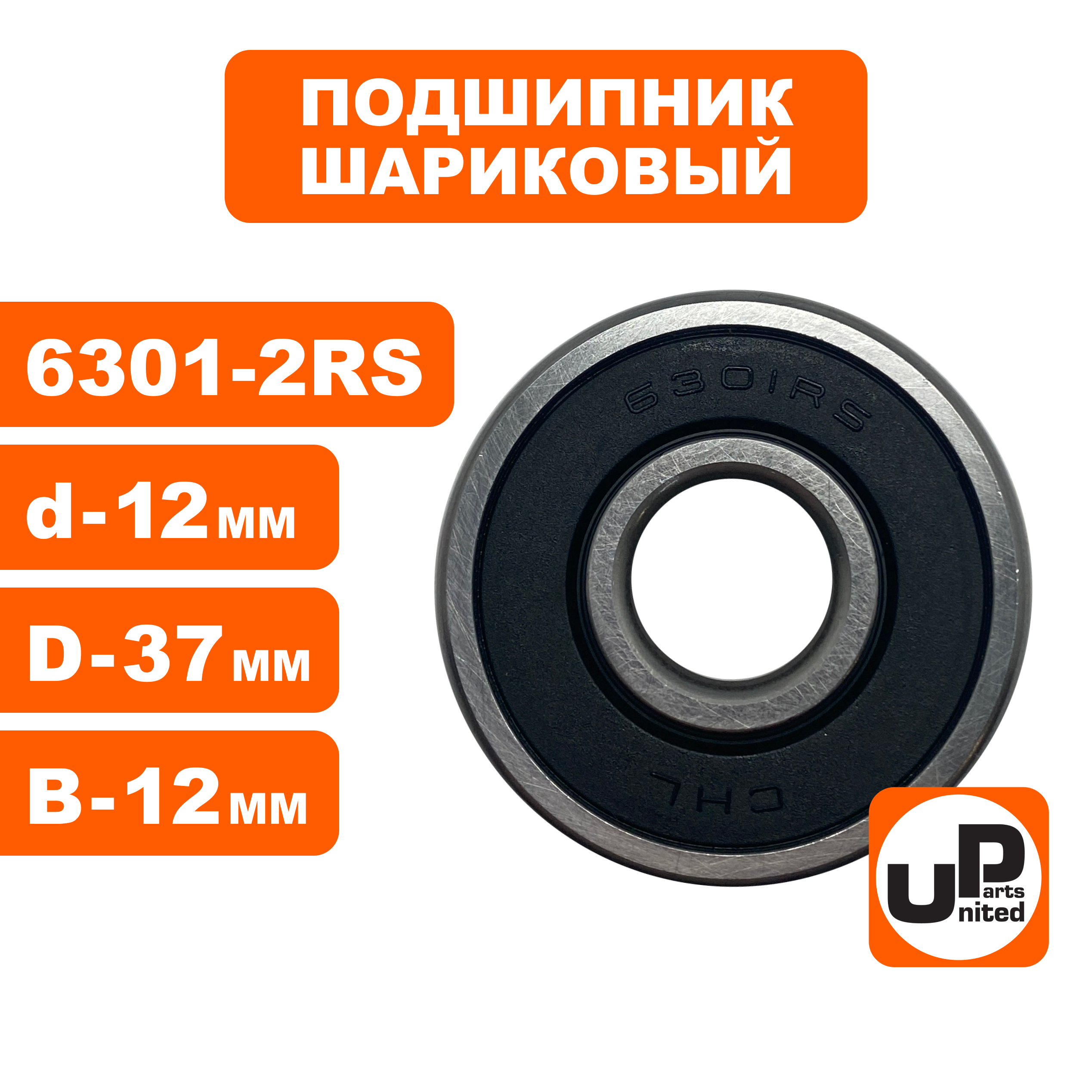 Подшипник шариковый UNITED PARTS 6301-2RS (закрытый) - цена, фото, технические характеристики