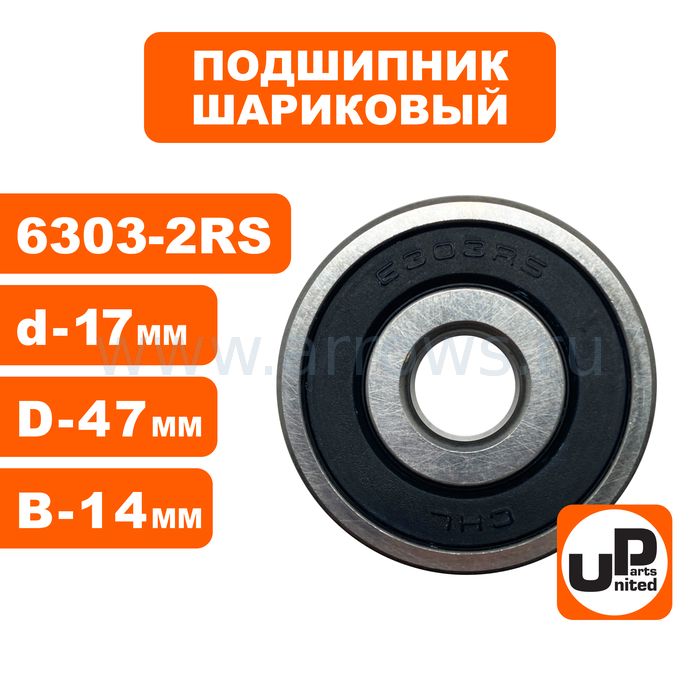 Подшипник шариковый UNITED PARTS 6303-2RS (закрытый) - цена, фото, технические характеристики