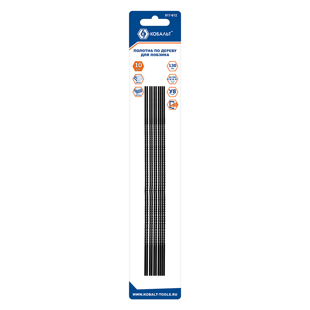 Полотна для лобзика КОБАЛЬТ по дереву, 130 мм, упаковка 10 шт., блистер (917-612) - цена, фото, технические характеристики