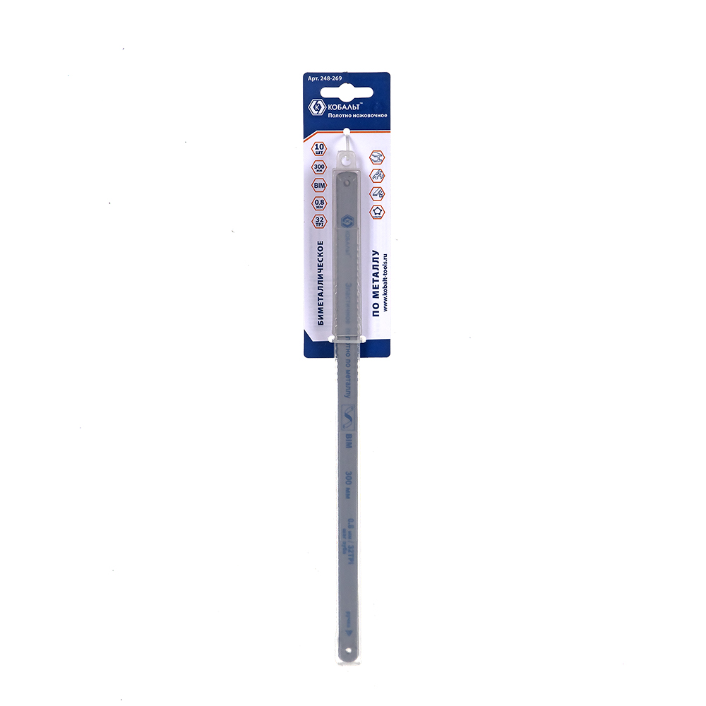 Полотно ножовочное по металлу КОБАЛЬТ 300 мм, эластичное, шаг 0.8 мм (32TPI), BIM, 10 ШТ., подвес (248-269) - цена, фото, технические характеристики