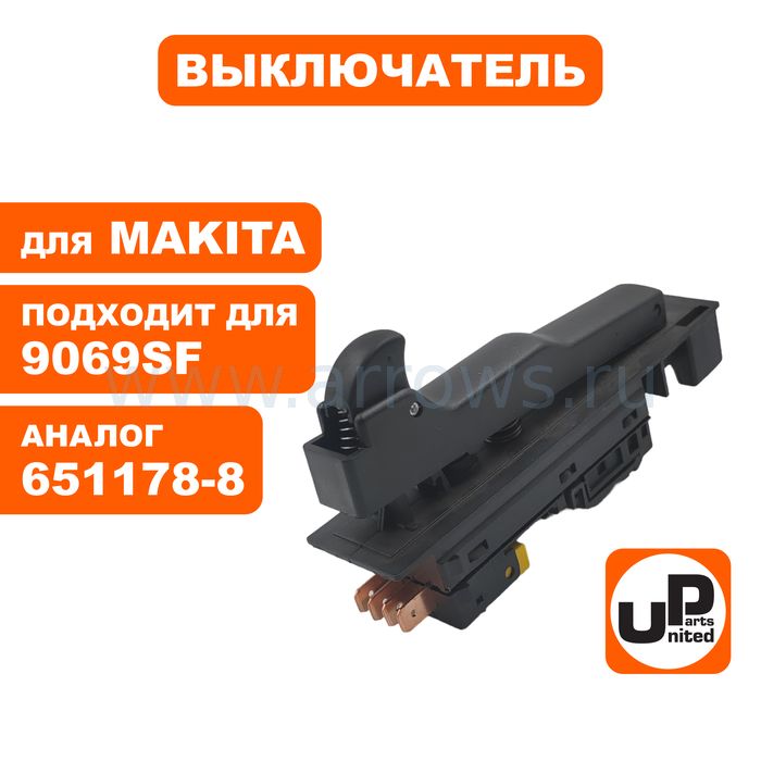 Выключатель курковый UNITED PARTS для УШМ MAKITA 9069SF, GA9030, GA9040 (4 контакта) (аналог 651178-8) - цена, фото, технические характеристики