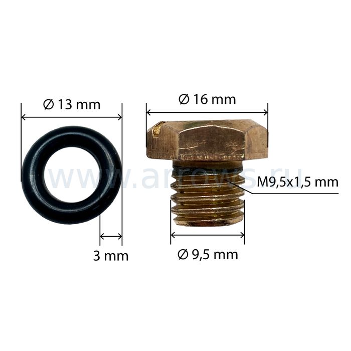 Пробка заливная шестигранная UNITED PARTS Ø9.5мм, М9.5х1.5мм для садовых насосов и насосных станций от 400/600 Вт (металл)