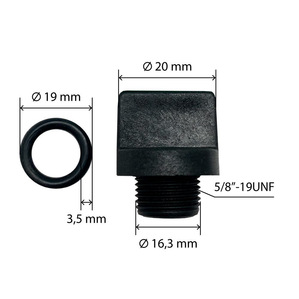 Пробка заливная/сливная UNITED PARTS Ø16,3мм, 5/8"-19 UNF, для садовых насосов и насосных станций от 600/800 Вт (пластик)