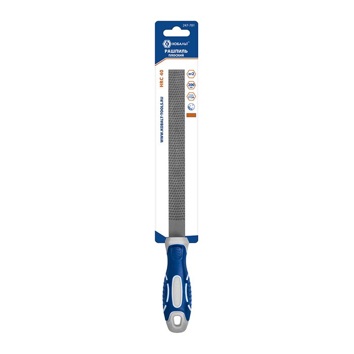 Рашпиль плоский КОБАЛЬТ насечка №2, длина рабочая/общая 180/310 мм, сечение 20х5 мм, 2-х компонентная рукоятка, блистер (247-781) - цена, фото, технические характеристики