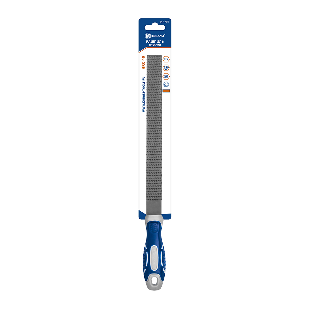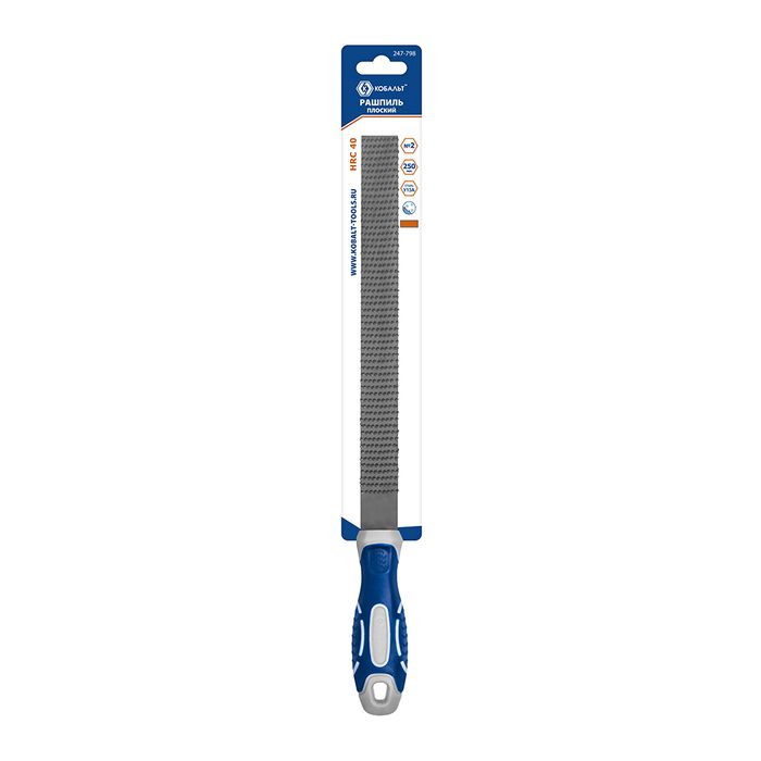 Рашпиль плоский КОБАЛЬТ насечка №2, длина рабочая/общая 225/360 мм, сечение 23х6.5 мм, 2-х компонентная рукоятка, блистер (247-798) - цена, фото, технические характеристики