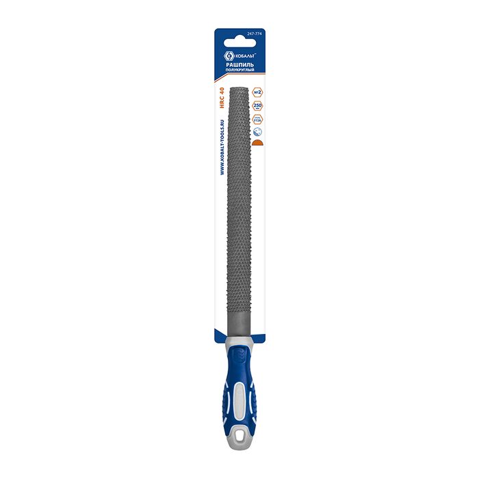 Рашпиль полукруглый КОБАЛЬТ насечка №2, длина рабочая/общая 225/360 мм, сечение 24х8 мм, 2-х компонентная рукоятка, блистер (247-774) - цена, фото, технические характеристики
