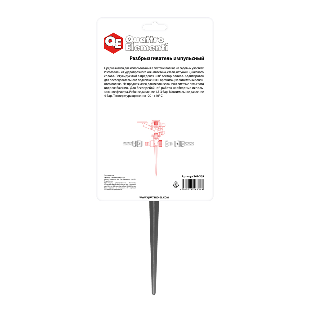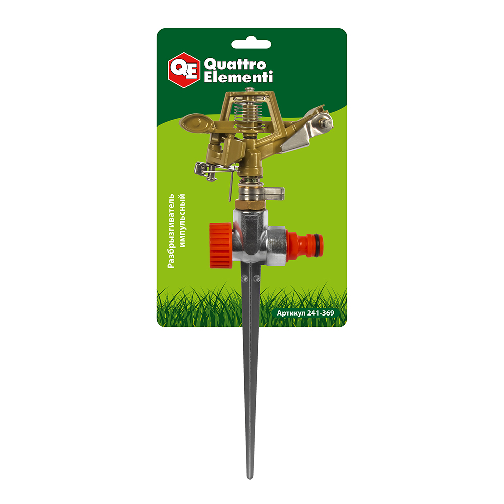 Разбрызгиватель QUATTRO ELEMENTI импульсный, металл, рег-ка сектора до 360°, радиус до 12 м (241-369) - цена, фото, технические характеристики