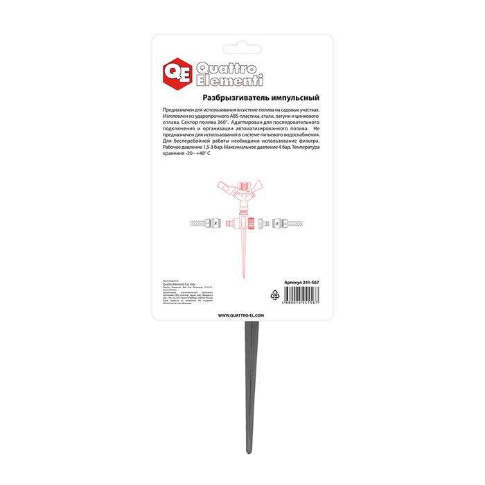 Разбрызгиватель QUATTRO ELEMENTI импульсный, металл, 360° без рег-ки сектора, радиус до 12 м (241-567) - цена, фото, технические характеристики