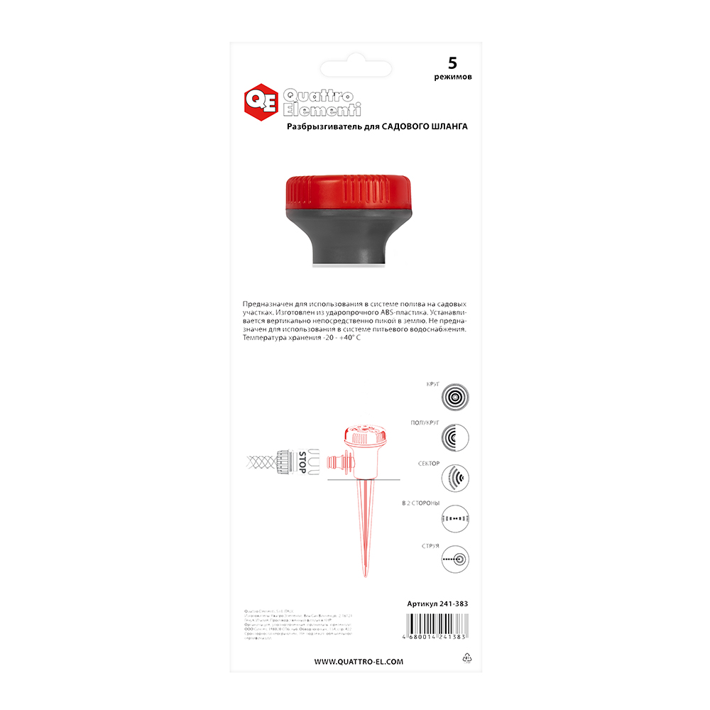 Разбрызгиватель QUATTRO ELEMENTI 5 режимов, пластик (241-383) - цена, фото, технические характеристики