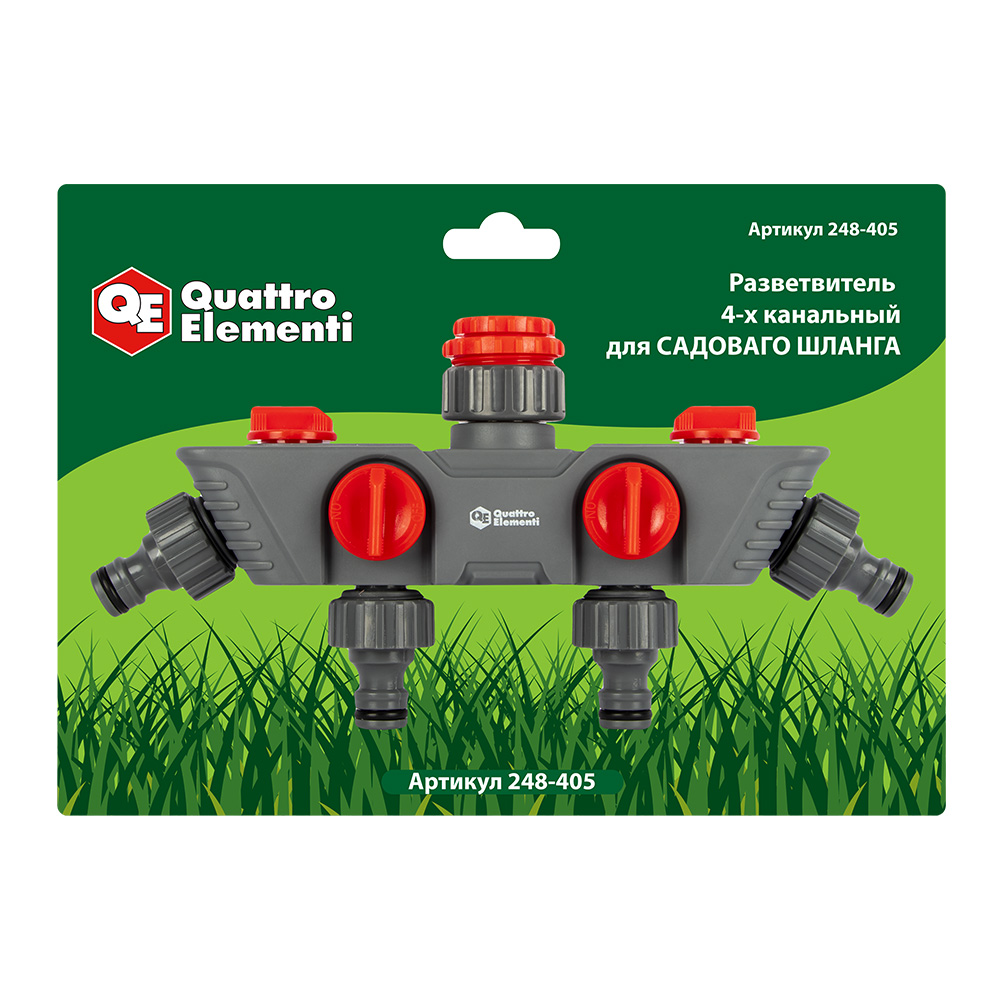 Разветвитель QUATTRO ELEMENTI 4-х канальный, внутр. резьба 3/4" и 1", пластик (248-405) - цена, фото, технические характеристики