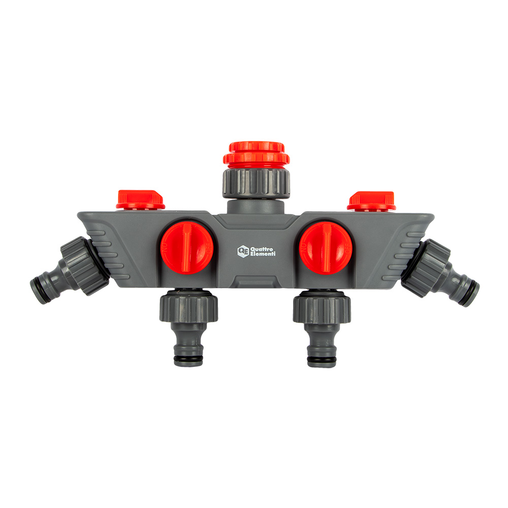 Разветвитель QUATTRO ELEMENTI 4-х канальный, внутр. резьба 3/4" и 1", пластик