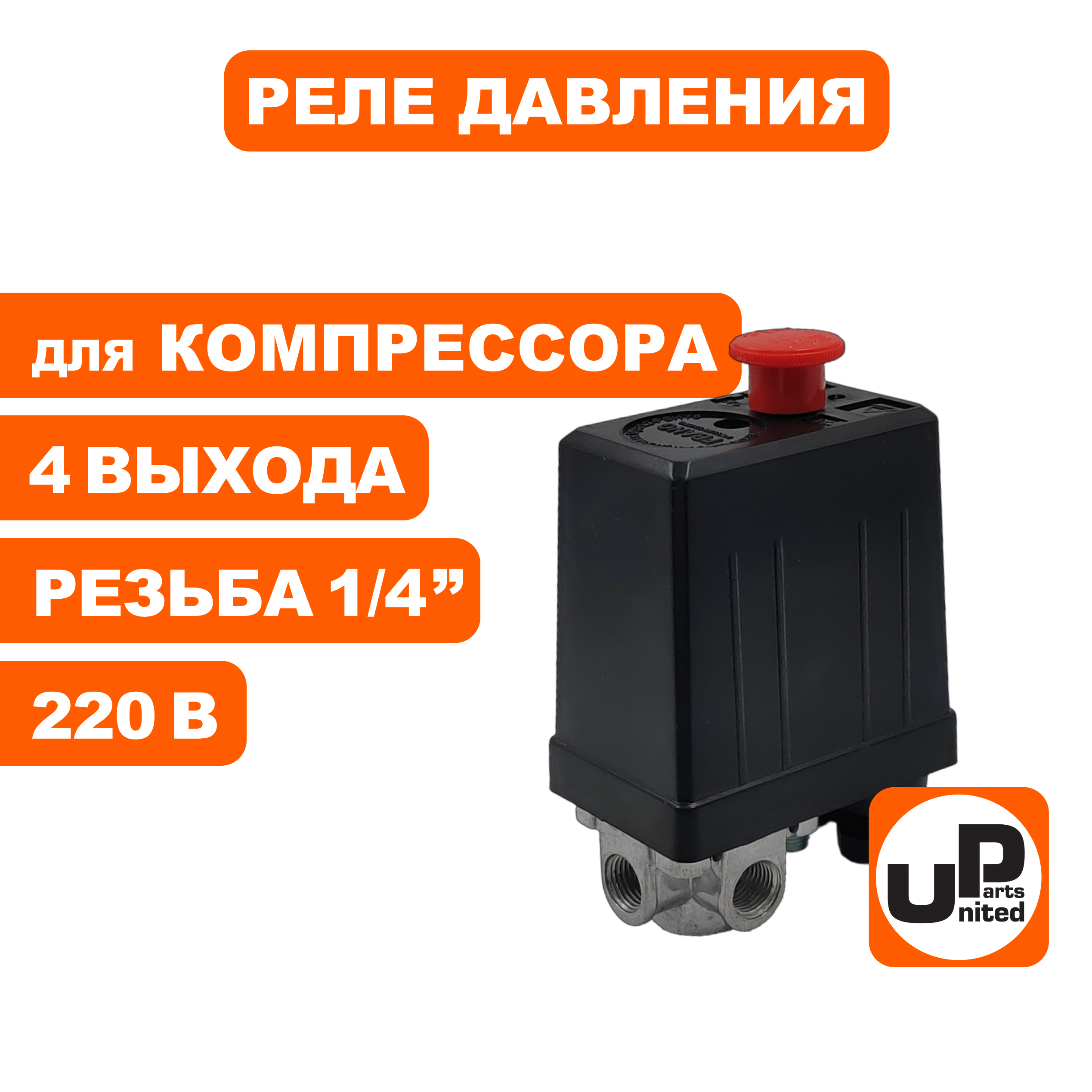 Реле давления UNITED PARTS для компрессора, 4 выхода, 220В, резьба внутренняя 1/4" - цена, фото, технические характеристики