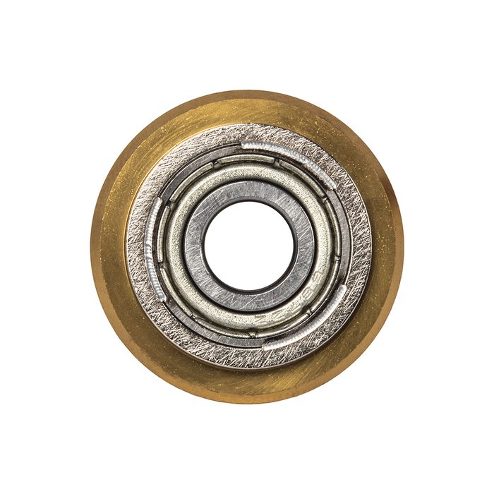 Ролик режущий для плиткореза КОБАЛЬТ 22х6х6 мм, ВК8, ТИТАНОВОЕ ПОКРЫТИЕ, ресурс 2000 МЕТРОВ РЕЗА, встроен. подш-к, блистер (919-395)