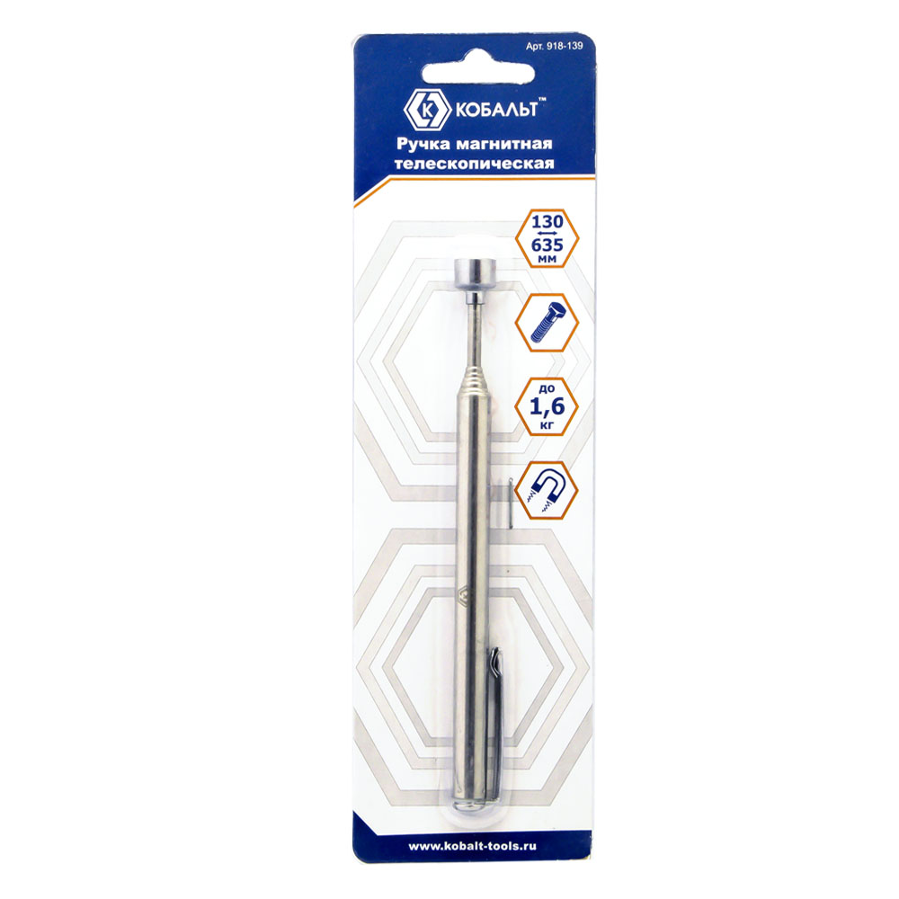 Ручка магнитная телескопическая КОБАЛЬТ 130 - 635 мм, магнит до 1.6 кг (1 шт.) блистер (918-139) - цена, фото, технические характеристики