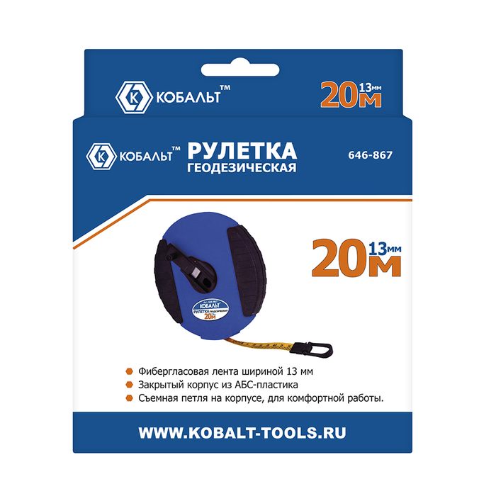 Рулетка геодезическая КОБАЛЬТ 20м x 13мм закрытый корпус, фибергласовая лента (646-867) - цена, фото, технические характеристики