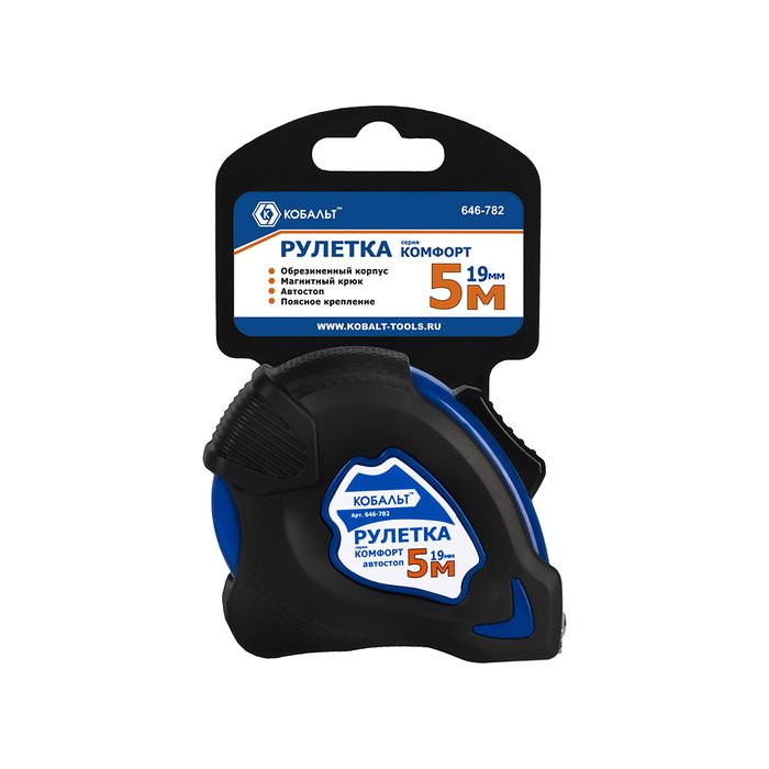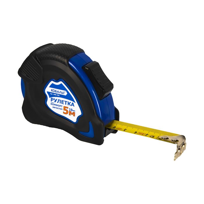 Рулетка КОБАЛЬТ Комфорт 5м x 19мм обрезиненный корпус, автостоп, магн.крючок, мат. покрытие ленты, толщина ленты 0.13 мм (646-782) - цена, фото, технические характеристики