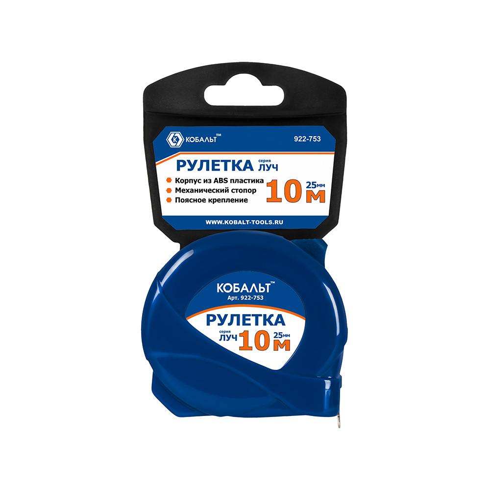 Рулетка КОБАЛЬТ Луч 10м x 25мм, корпус из ABS пластика, мех.стопор, белое мат. покрытие, толщина ленты 0.11 мм (922-753) - цена, фото, технические характеристики