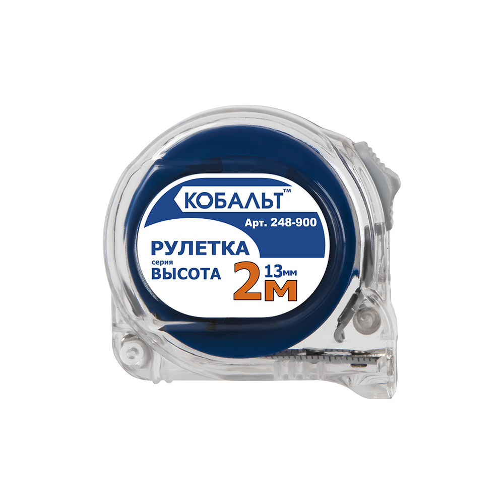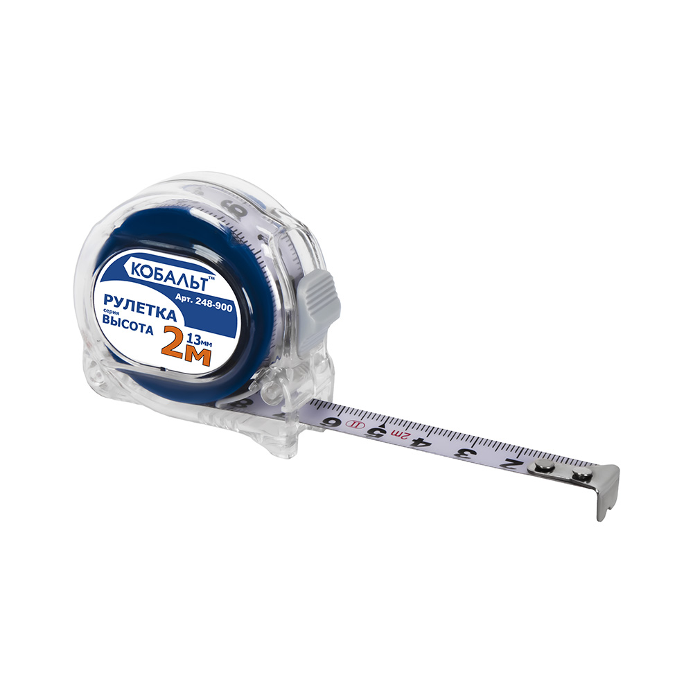 Рулетка КОБАЛЬТ - брелок Высота 2м x 13мм, прозр. корп., мех.стопор, 2-стор.шкала, белое мат. покр. ленты, толщина ленты 0.11 мм (248-900) - цена, фото, технические характеристики