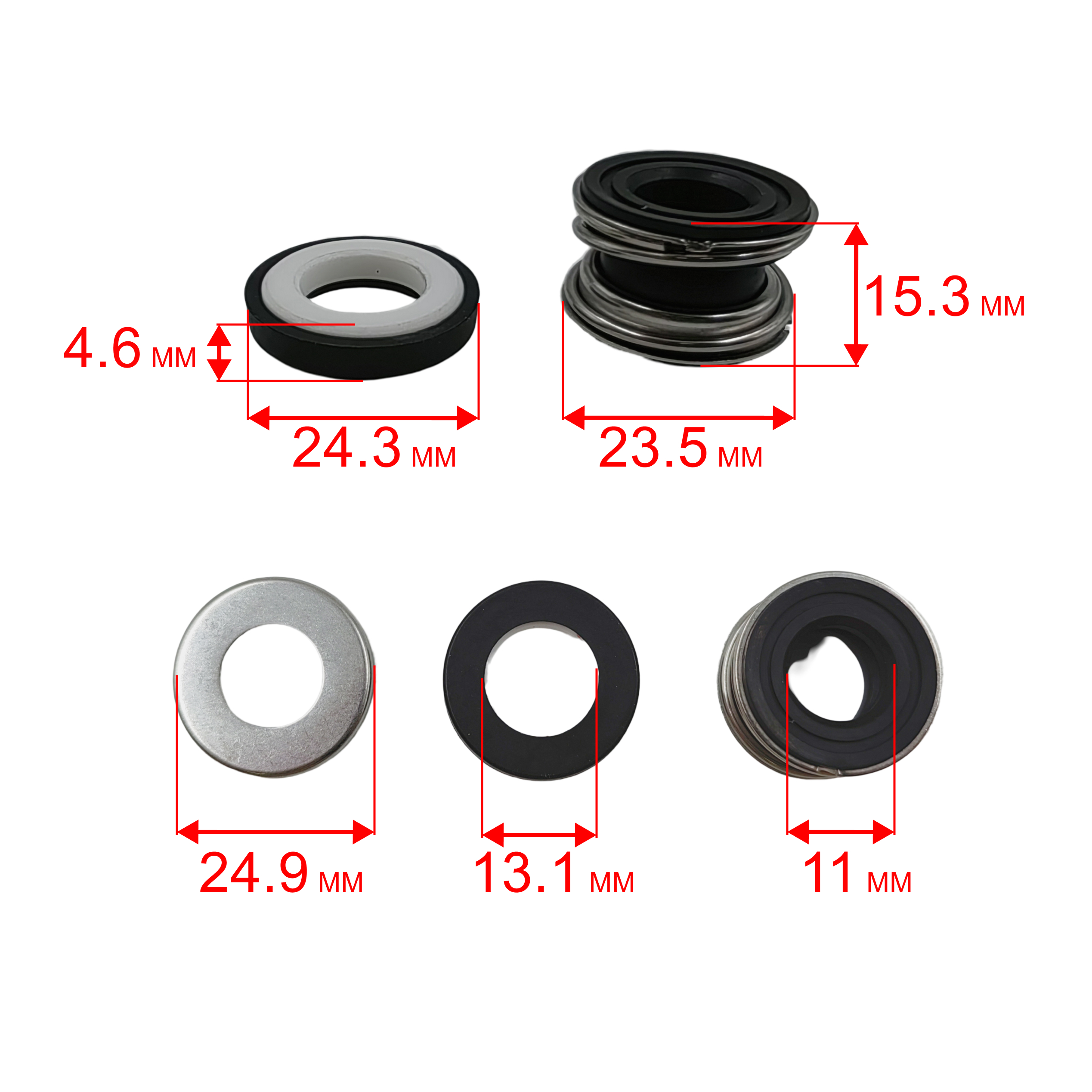 Сальник механический QUATTRO ELEMENTI D400 Zero (мех: Ø23,5мм, Ø12мм, высота 15мм) (кер: Ø24мм, Ø13мм, высота 4,5мм)