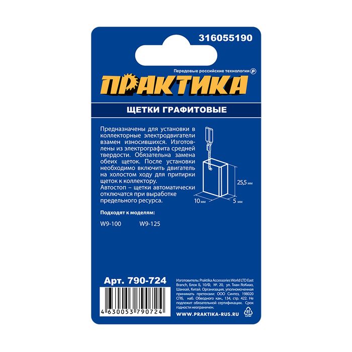 Щетка графитовая для METABO ПРАКТИКА (аналог 316055190) 5х10х15,5 мм, автостоп (790-724) - цена, фото, технические характеристики