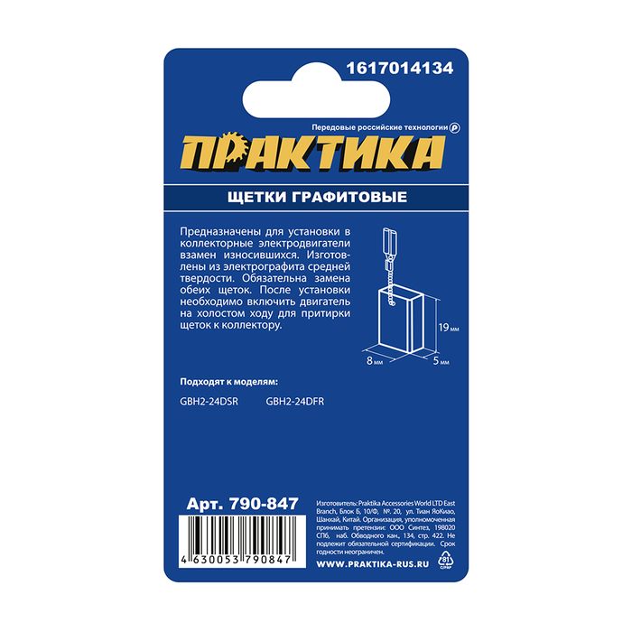 Щетка графитовая для BOSCH ПРАКТИКА (аналог 1617014134) 5x8x19 мм (790-847) - цена, фото, технические характеристики