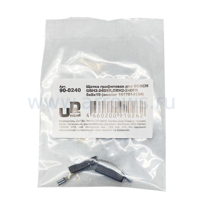 Щетка графитовая UNITED PARTS для BOSCH GBH2-24DSR,GBH2-24DFR (аналог 1617014134) 5х8х19мм АВТОСТОП - цена, фото, технические характеристики