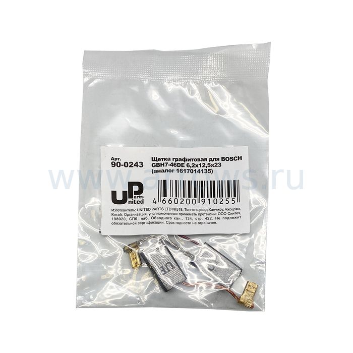 Щетка графитовая UNITED PARTS для BOSCH GBH7-46DE (аналог 1617014135)  6,2х12,5х23мм АВТОСТОП
