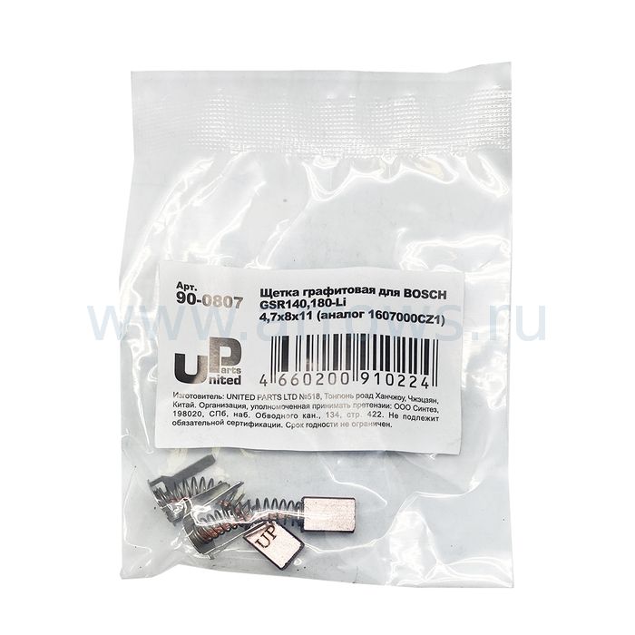 Щетка графитовая UNITED PARTS для BOSCH GSR140,180-Li (аналог 1607000CZ1) 4,7х8х11мм (аналог 1607000CZ1) 4,7х8х11мм