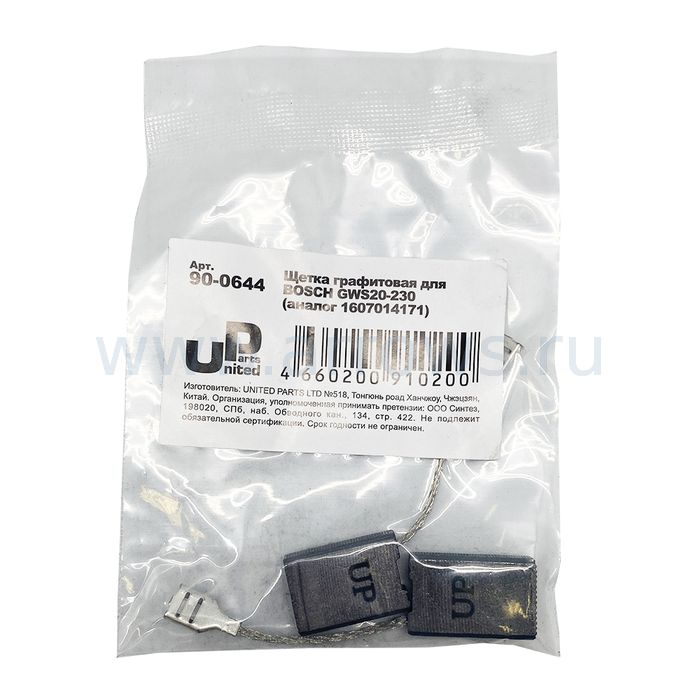 Щетка графитовая UNITED PARTS для BOSCH GWS20-230 (аналог 1607014171) 6,2х16х23мм АВТОСТОП - цена, фото, технические характеристики